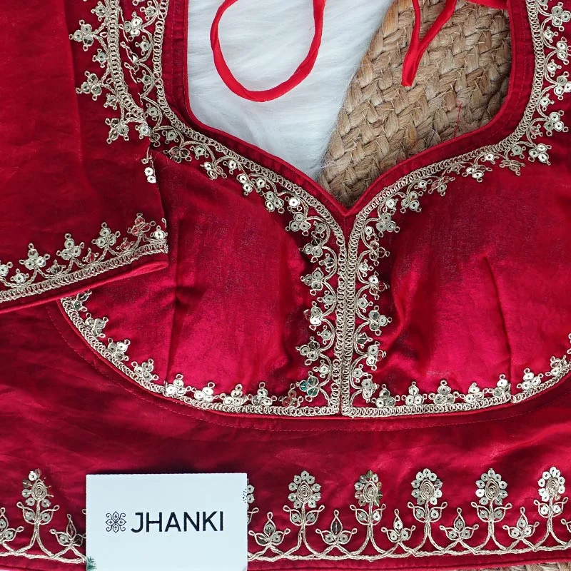 At Jhanki, each blouse is carefully handcrafted and quality-checked before dispatch. As our pieces are limited and made with care, we do not offer returns or exchanges for size or personal preference.