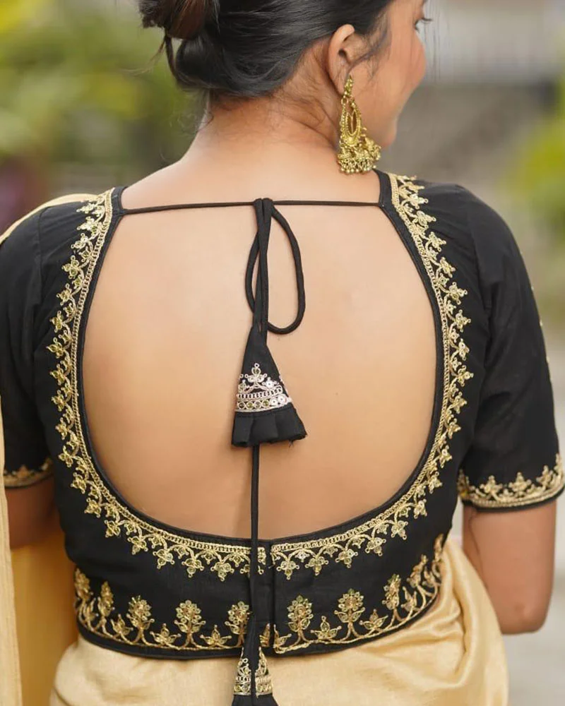 Zari and sequin embroidery complemented by stylish back designs with tassel tie-ups.