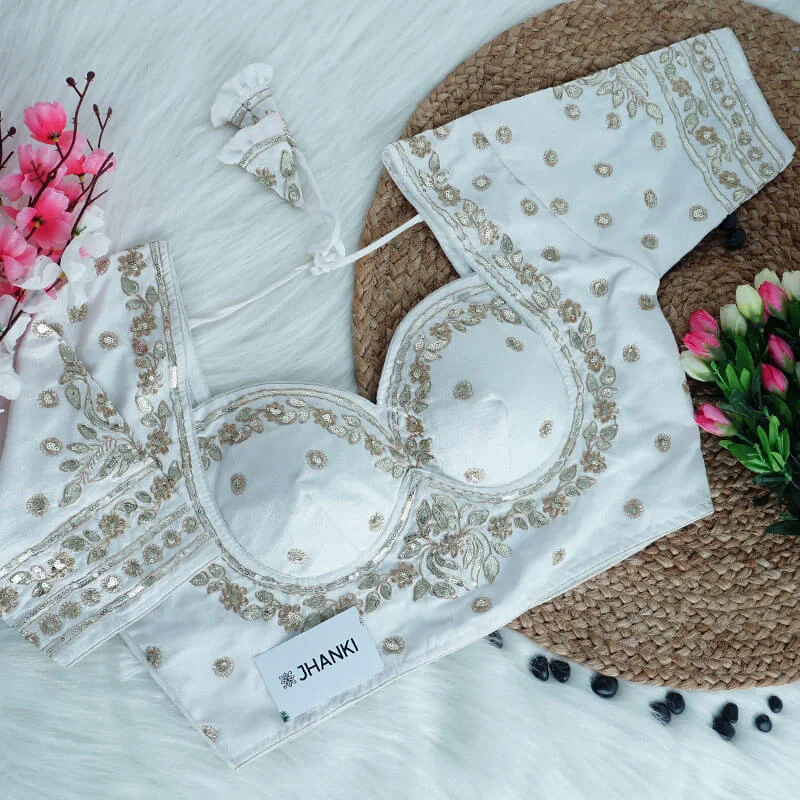 At Jhanki, each blouse is carefully handcrafted and quality-checked before dispatch. As our pieces are limited and made with care, we do not offer returns or exchanges for size or personal preference.