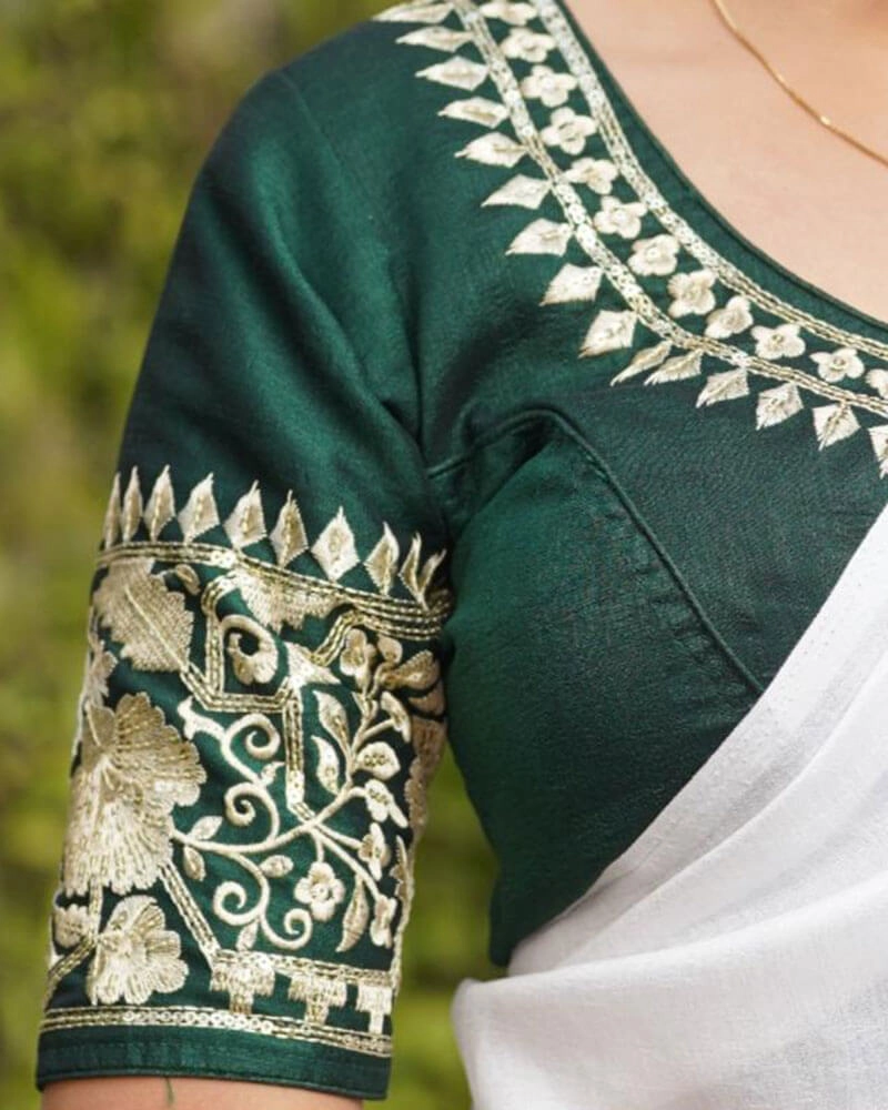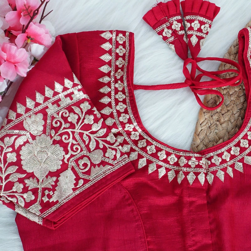 Crafted from rich pashmina silk, this blouse features exquisite golden embroidery, blending luxury with timeless charm.