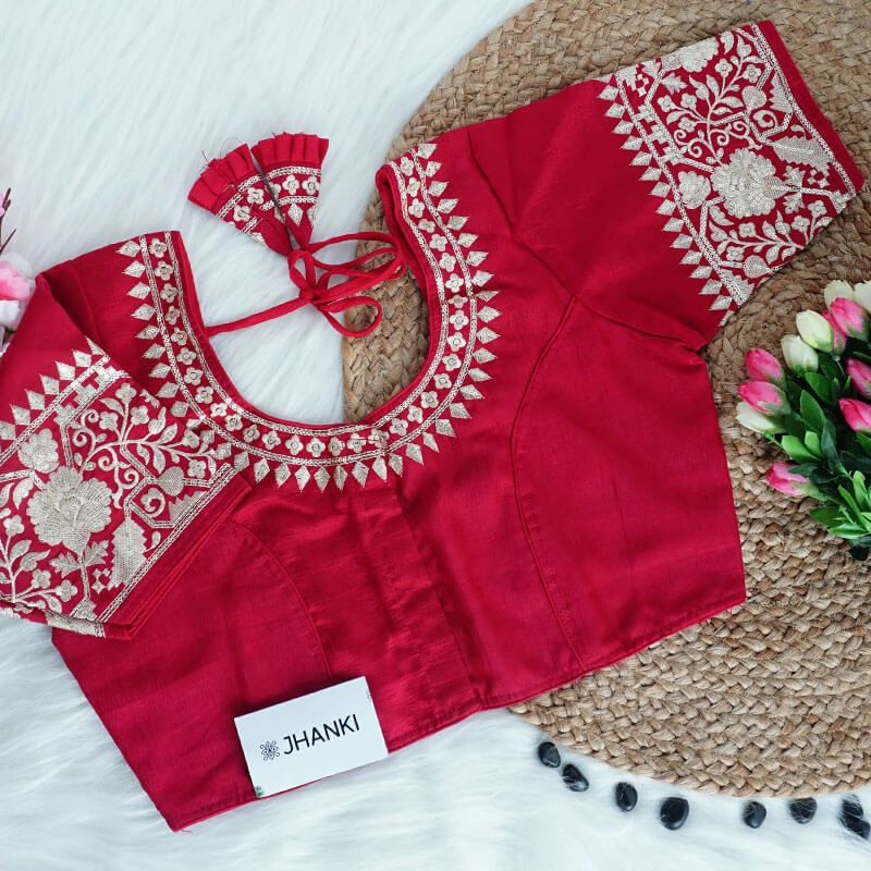 At Jhanki, each blouse is carefully handcrafted and quality-checked before dispatch. As our pieces are limited and made with care, we do not offer returns or exchanges for size or personal preference.