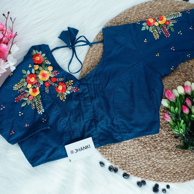 At Jhanki, each blouse is carefully handcrafted and quality-checked before dispatch. As our pieces are limited and made with care, we do not offer returns or exchanges for size or personal preference.