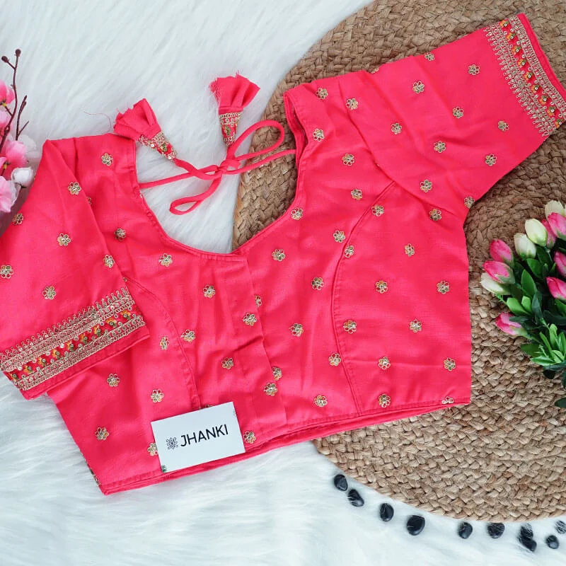 At Jhanki, each blouse is carefully handcrafted and quality-checked before dispatch. As our pieces are limited and made with care, we do not offer returns or exchanges for size or personal preference.