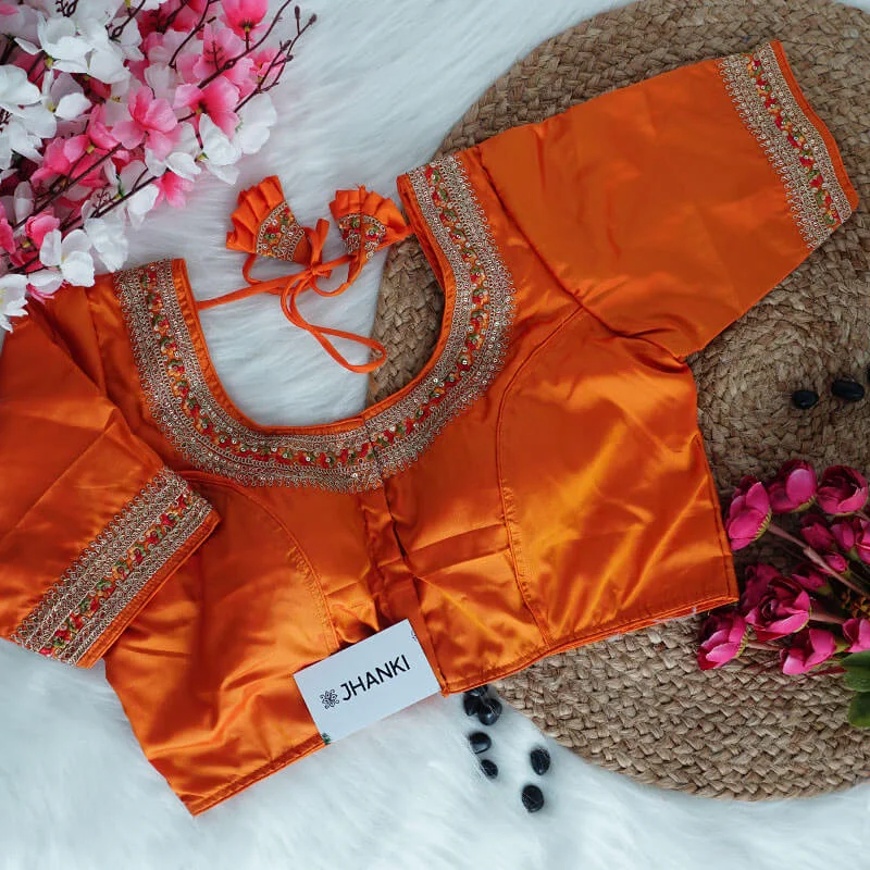 At Jhanki, each blouse is carefully handcrafted and quality-checked before dispatch. As our pieces are limited and made with care, we do not offer returns or exchanges for size or personal preference.