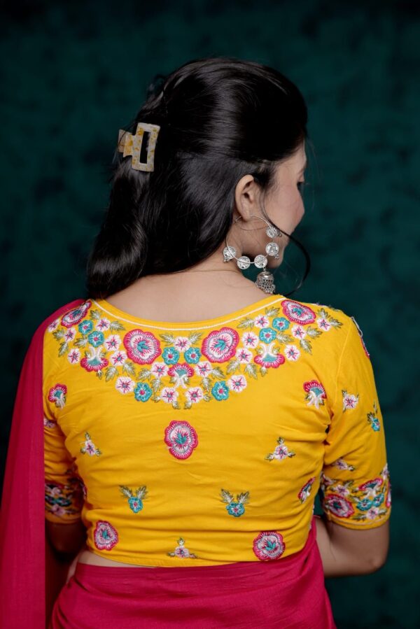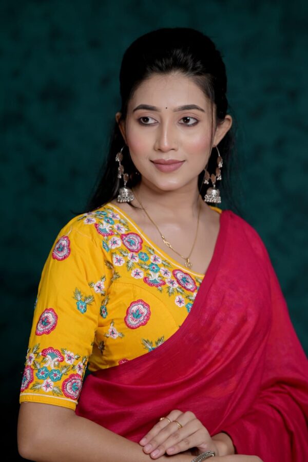 The embroidery is neatly placed across the blouse, adding subtle richness without overpowering the overall look. Designed for versatility, Pushpita is ideal for daily wear as well as light festive occasions. Its structured silhouette ensures ease of movement and long-lasting comfort throughout the day.