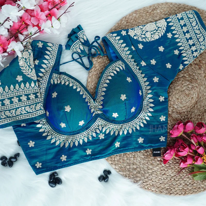 At Jhanki, each blouse is carefully handcrafted and quality-checked before dispatch. As our pieces are limited and made with care, we do not offer returns or exchanges for size or personal preference.