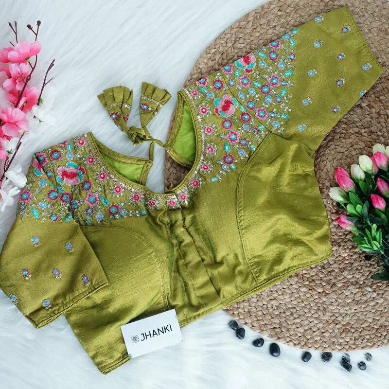 At Jhanki, each blouse is carefully handcrafted and quality-checked before dispatch. As our pieces are limited and made with care, we do not offer returns or exchanges for size or personal preference.