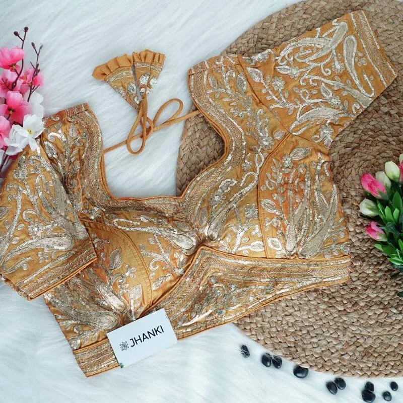 At Jhanki, each blouse is carefully handcrafted and quality-checked before dispatch. As our pieces are limited and made with care, we do not offer returns or exchanges for size or personal preference.
