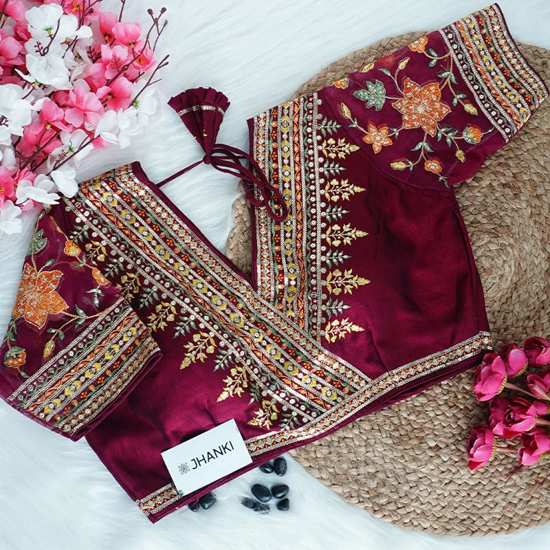 At Jhanki, each blouse is carefully handcrafted and quality-checked before dispatch. As our pieces are limited and made with care, we do not offer returns or exchanges for size or personal preference.