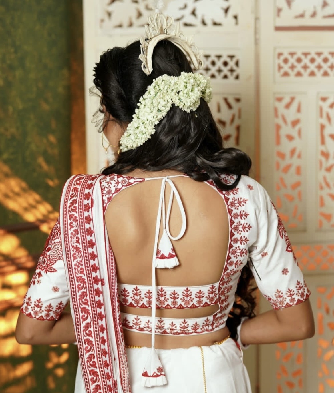 This blouse pairs beautifully with bridal sarees, Banarasi sarees, festive silk sarees, and traditional Bengali sarees.